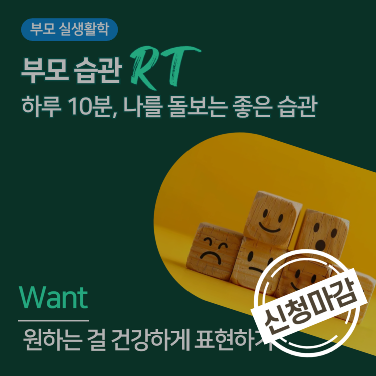 RT에서 내 마음 근력을 키우고, 부모인 나를 돌보는 시간을 가져봐요.