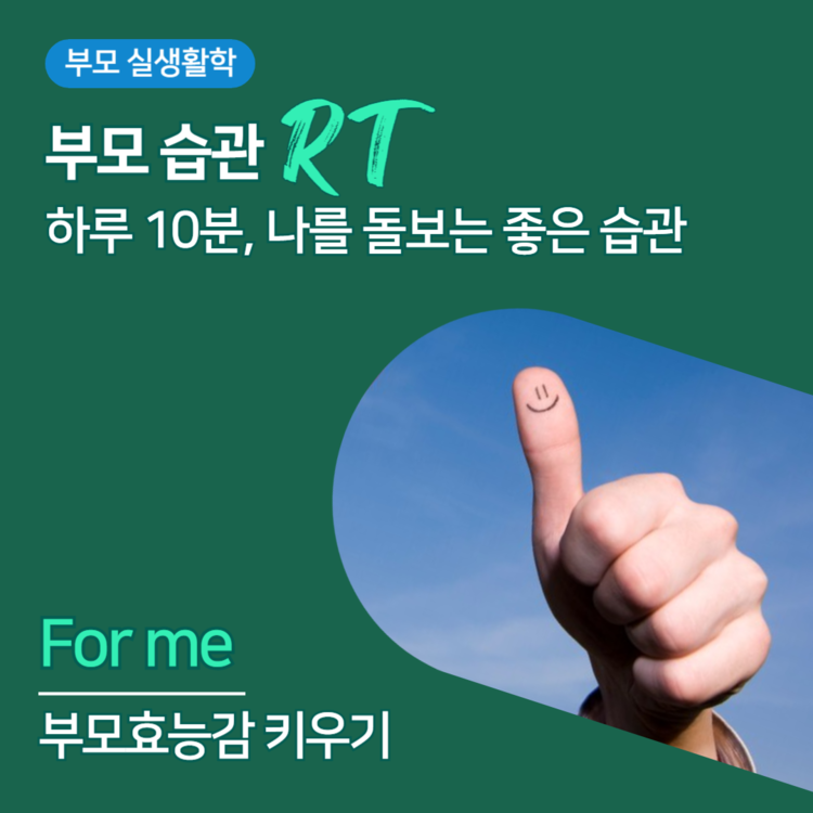 PT하며 꾸준히 운동으로 내 몸을 돌보는 것처럼, RT에서 내 마음 근력을 키우고, 부모인 나를 돌보는 시간을 가져봐요.